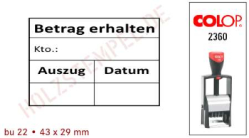 | Abdruck 43 x 29 mm integriertes Stempelkissen Druckfarbe schwarz inkl. Stempelplatte | Ersatzstempelkissen E/2300 |